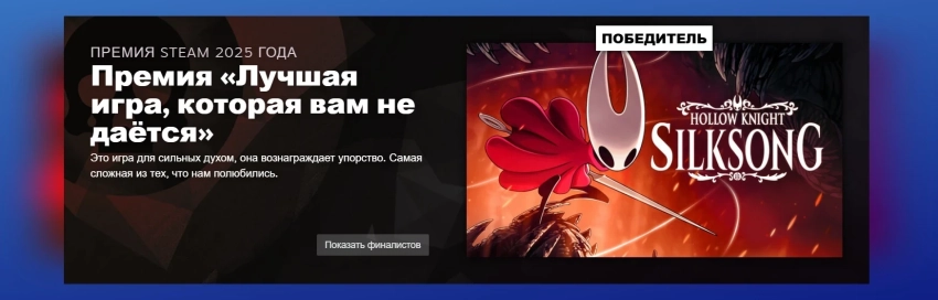 «Игрой года» стала долгожданная метроидвания Hollow Knight: Silksong. Она же одержала победу и в категории «Лучшая игра, которая вам не даётся».
