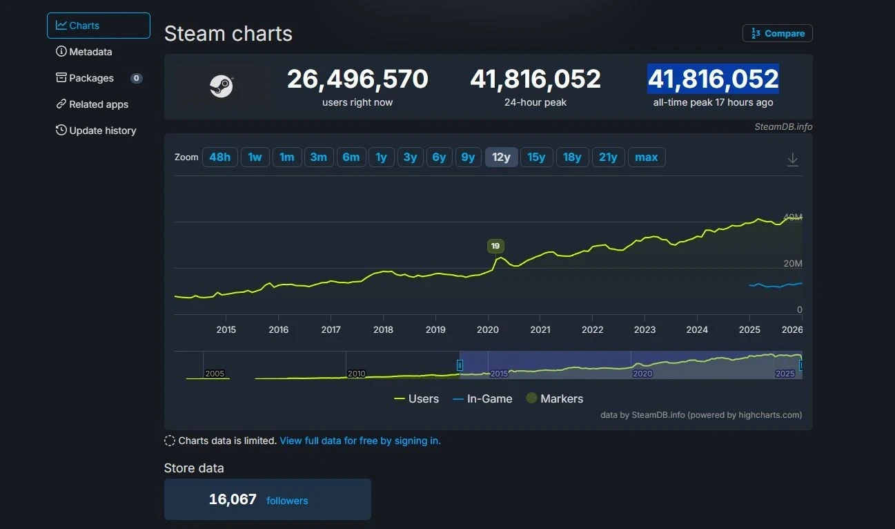 Steam установил новый рекорд по одновременному количеству пользователей