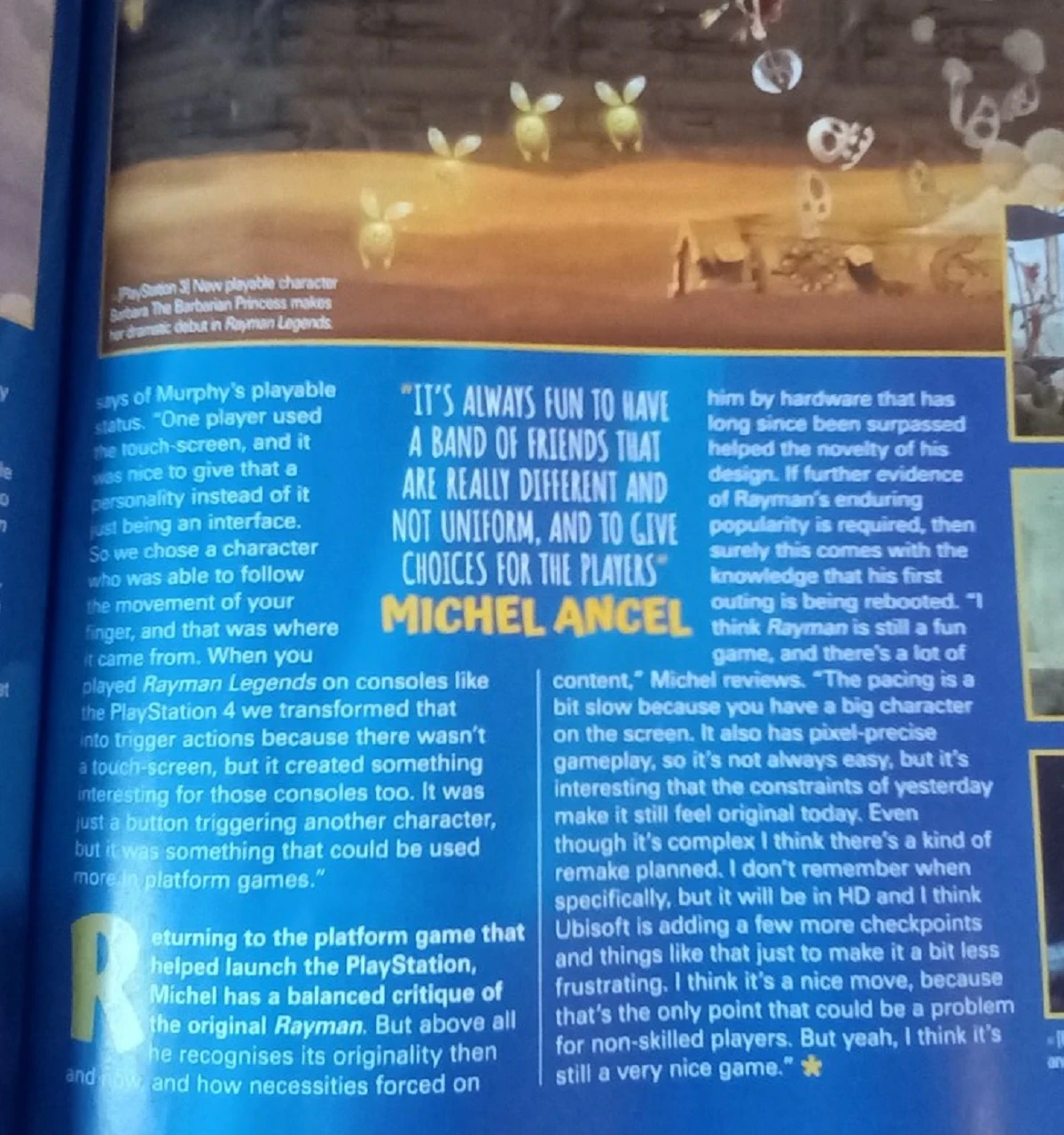 По его словам, Ubisoft готовит «своего рода ремейк» с обновлённой графикой и большим количеством контрольных точек/чекпоинтов. Последнее улучшение сделает игру менее сложной, чтобы не отпугнуть неопытных геймеров. Сам Ансель считает Rayman «всё ещё очень хорошей» и «увлекательной игрой с большим количество контента».