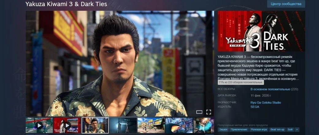 Yakuza Kiwami 3 и Dark Ties вышли и собирают в основном положительные отзывы в Steam